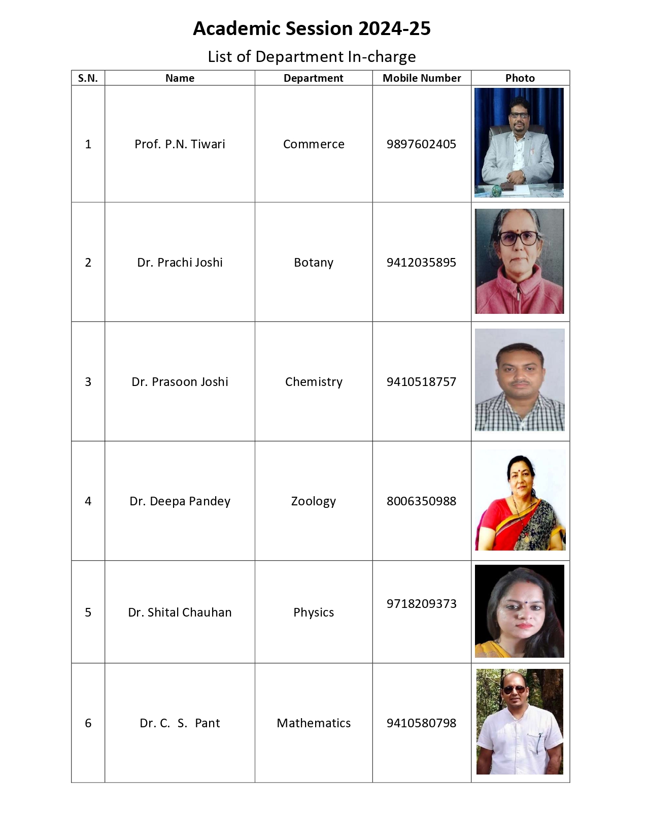 List Of Hod's 2024-25