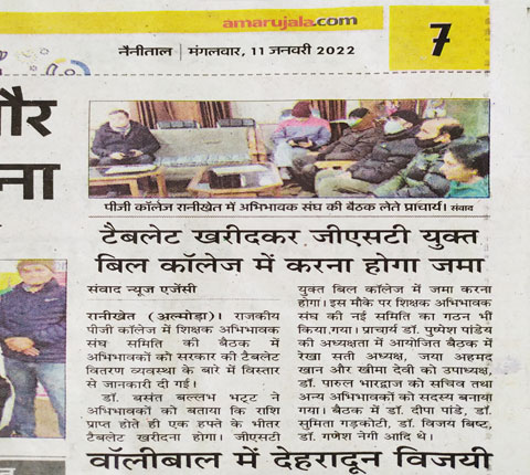 PTA executive body of doctor SSJDWSSSGovernment PGCollege Ranikhet (Almora) was constituted on 10th January 2022 for the session 2022-2023